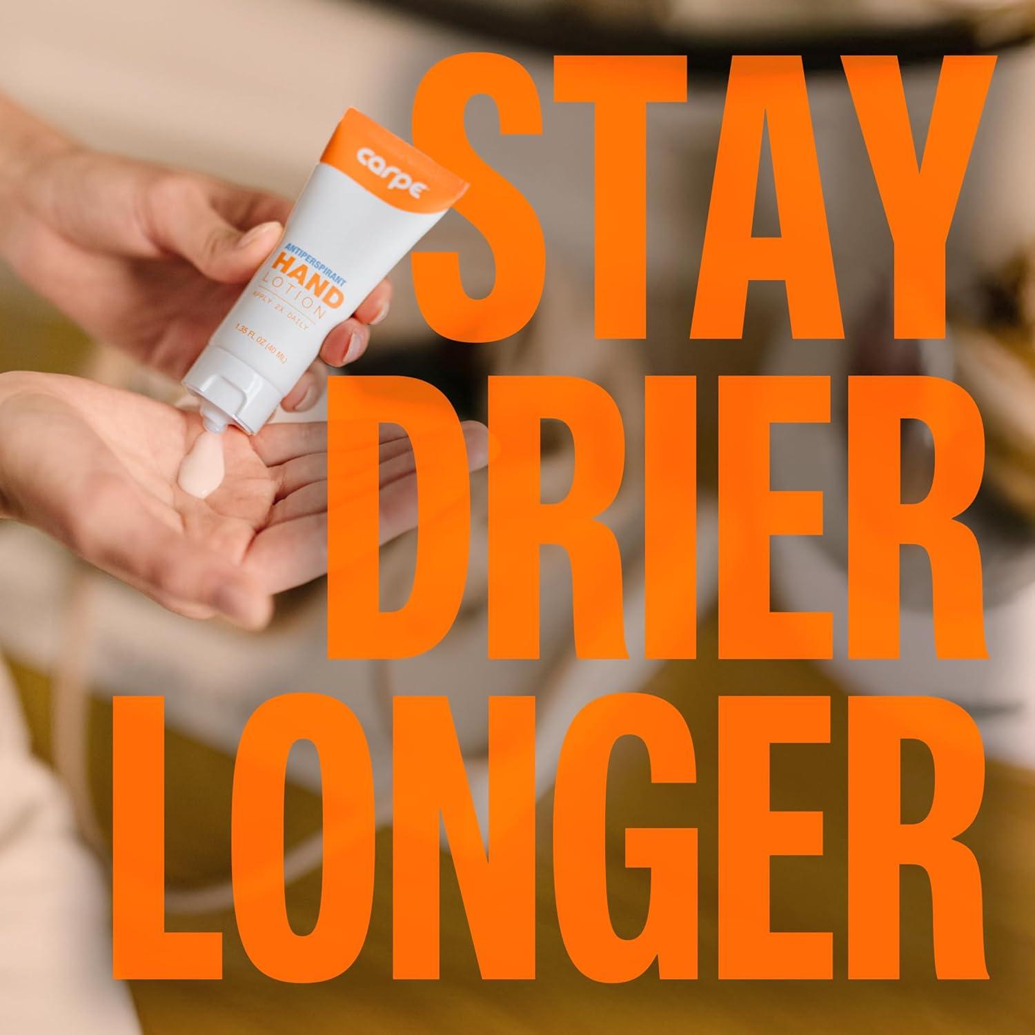 AS SEEN ON GOOD MORNING AMERICA: A smooth, non-greasy, and non-irritating sweat absorbing lotion made for the sweatiest hands, Carpe includes ingredients that gently soothe the skin, and avoids greasiness with its quick-drying properties