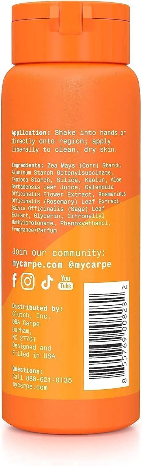 FUNK-FREE FRESHNESS: Carpe's feminine powder is designed to be safe for private parts, underboob sweat, and skin folds. Our super-fine body powder for women is designed to feel soft on the skin, prevent chafing, and absorb sweat.
